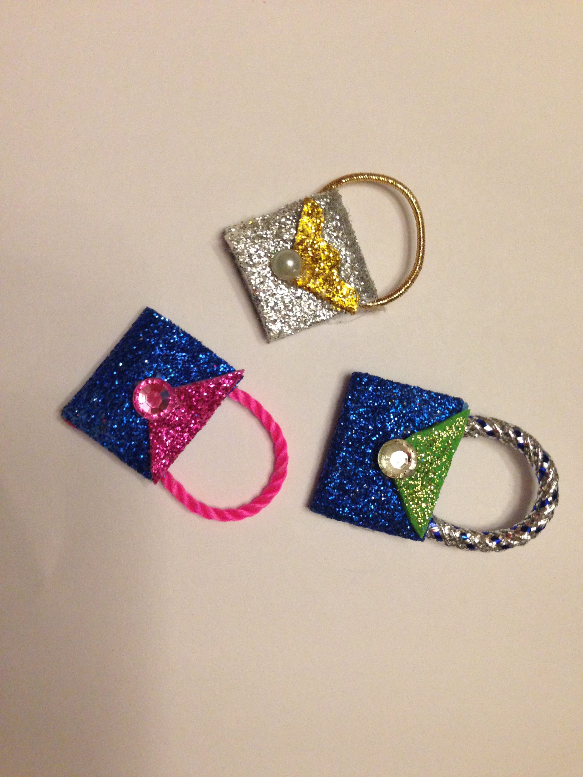 Cut a piece of the sparkly foam into what ever size purse you like. An average size would be 2″ X 3/4 inch (remember the strip you cut will be bent in half) For a clutch cut a shorter length.