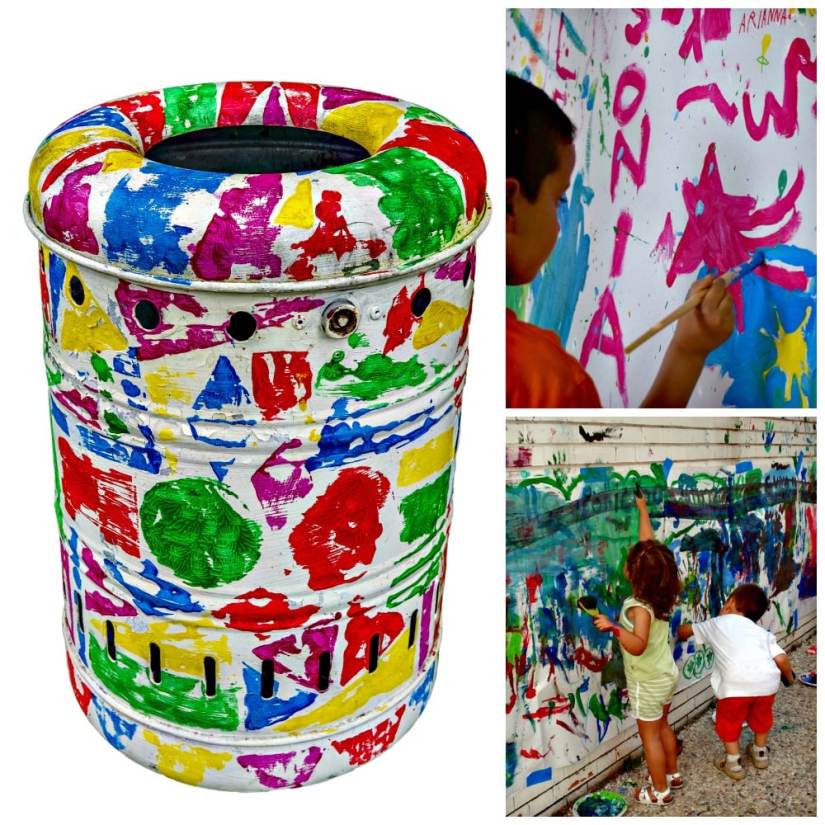 Hand Painted Garbage Can and Fence