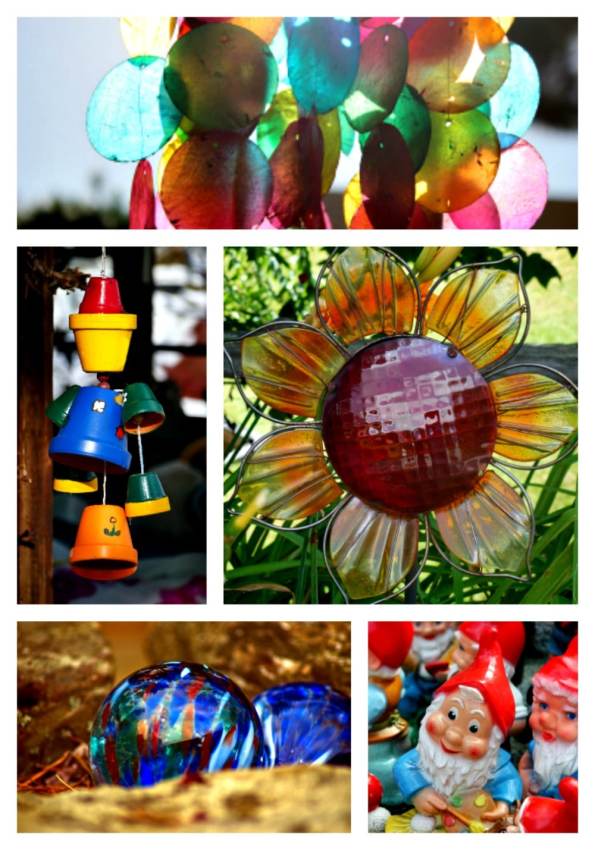 When it comes to colorful lawn ornaments and chimes there are endless possibilities to choose from. Quick note about chimes. Check with your neighbors first. Some people suffer from extreme head-aches from the ongoing but somewhat erratic sound; they’re not for everyone and many people are easily annoyed by them so I’m just going to ‘chime’ in on this point and remind everyone to be a considerate neighbor.